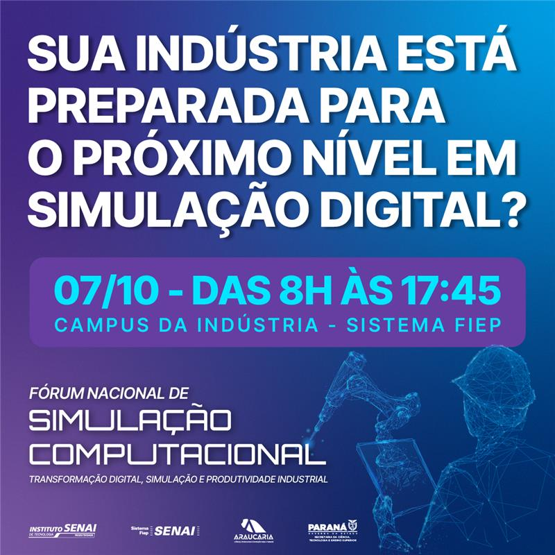 O Fórum Nacional de Simulação Computacional é uma iniciativa do Senai, com apoio de empresas e instituições parceiras. O objetivo central é debater o papel estratégico da simulação computacional na transformação digital da indústria.