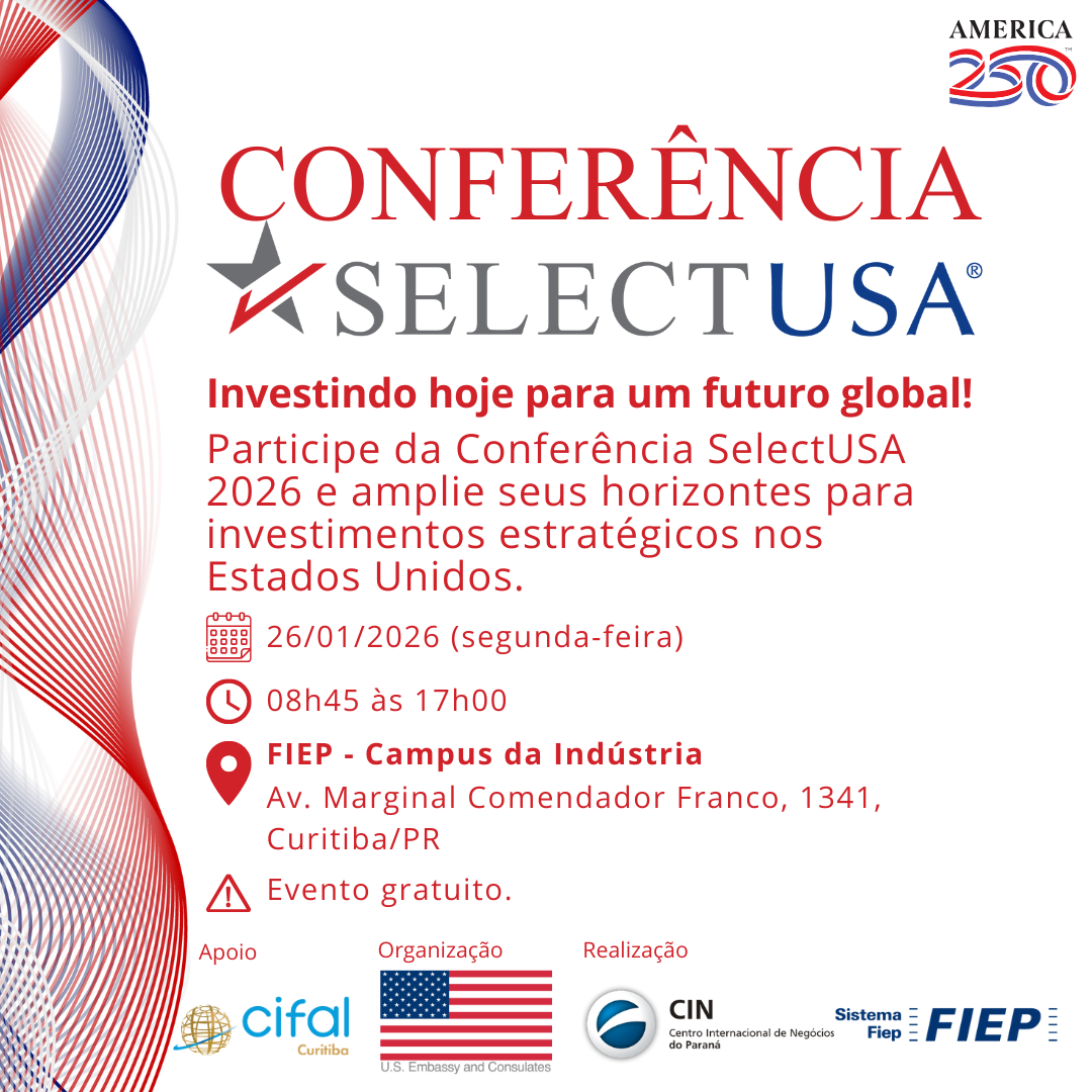 A Conferência SelectUSA 2026 trará representantes de 8 Estados norte-americanos, além de experts em internacionalização, para apoiar o empresariado paranaense no mapeamento de oportunidades comerciais, bem como na formatação de uma estratégia de internacionalização assertiva.